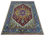 Blue, Maroon and Gold Hand Knotted Traditional Heriz Serapi Multi size Wool Area Rug