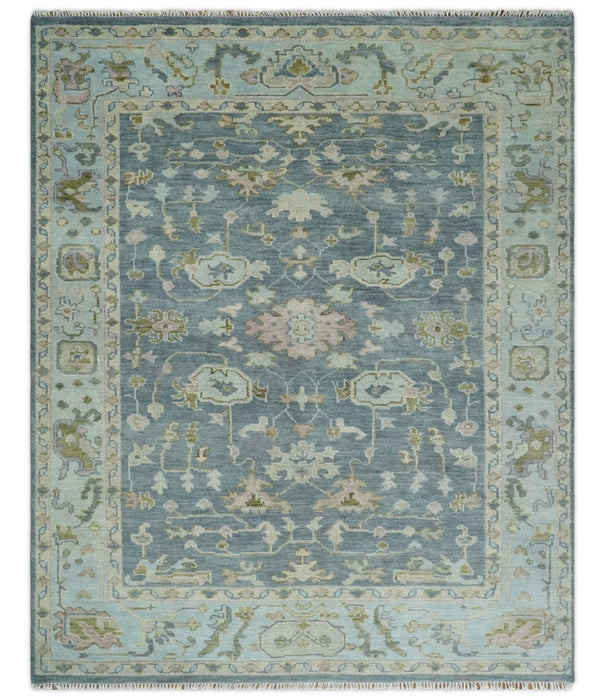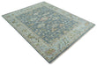 Custom Made Hand Knotted Gray, Blue and Beige Traditional Oushak Wool Area Rug