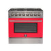 Forno Galiano 36-Inch Freestanding Dual Fuel Range, 6 Burners, Double Convection Ovens, Red Door