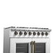 Our 36" Galiano Dual Fuel French Door Range blends timeless design and high performance. Featuring a crisp white finish and antique brass knobs, this range adds sophistication to any kitchen at an affordable price. The cooktop boasts six sealed burners with a total output of 83,000 BTU, including a 20,000 BTU dual-ring burner ideal for boiling, searing, or simmering delicate sauces. The heavy-duty cast iron grates provide a stable surface and allow you to slide cookware effortlessly across the cooktop. Its spacious 5.36 cu.ft. true convection oven delivers even heat distribution, powered by 6,300 watts, for perfectly baked and roasted dishes. Easy-to-clean black enamel interiors, French door convenience, and included electroplated racks make this range as practical as it is beautiful. Complete with an LP conversion kit and NEMA 14-50 power cord, the Galiano Range is built for both style and efficiency.
