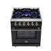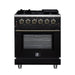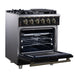 Forno Massimo 30-Inch Black Freestanding Gas Range, 4 Burners, True Convection Oven