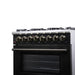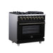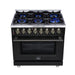 Forno Massimo 36 Inch Freestanding Dual Fuel Range in Black with Antique Brass Accessories, 6 Burners, 5.36 cu. ft. Convection Oven