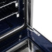 The Massimo 36 inch dual fuel range delivers powerful performance with elevated style. It features six sealed gas burners and matte cast iron grates, plus included accessories like a wok ring and removable griddle. The 5.36 cu. ft. electric oven offers true convection cooking, dual-element broiling, and five baking modes for maximum versatility. Designed in a bold black finish with antique brass handles, this range includes a built-in air fryer basket, steam-clean oven, and a speckled blue enamel interior. LP gas convertible and suitable for both freestanding or built-in installations.