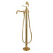 Distinguished for their stately configuration and artsy architecture, freestanding tub faucets are the perfect fixture for any contemporary home to both complement a freestanding tub and act as a beautiful ornamental piece in your bathroom. As the perfect accompaniment to your tub, the English Country Freestanding Roman tub filler With Hand Shower will surely complete your refined bathroom decorum with the help of its premium, glistening finish and hand shower. The brass and zinc alloy construction also make for a heavy, quality made product.