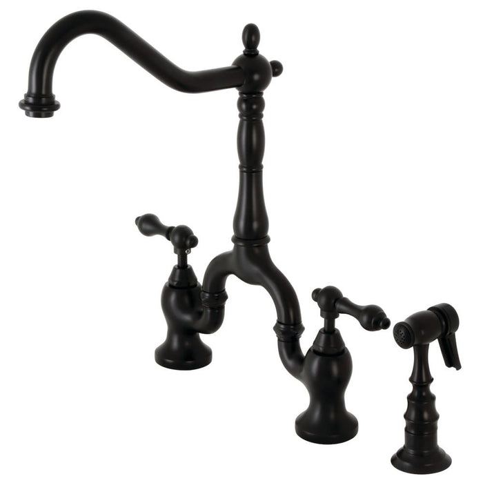 Kingston Brass English Country Kitchen Bridge Faucet with Brass Sprayer (KS7758ALBS)