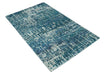 Modern Abstract Hand Knotted Teal and Ivory Contemporary Recycled Silk Area Rug
