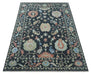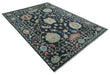 Modern Hand Knotted Black and Multicolor 10x14 Traditional Oushak Wool Rug