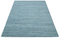 Modern Solid Handloom Aqua and Silver 8x10 Contemporary Wool Area Rug