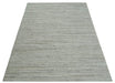 Modern Solid Self Design Abstract Handloom Ivory, Silver and Brown 8x10 Contemporary Wool Area Rug | TRD10282810S