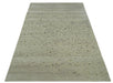 Olive and Dark Green and Silver 5x8 Hand Knotted Abstract Wool and Silk Area Rug