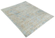 Premium look Hand knotted Silver and Blue modern Abstract wool and Silk Blended 7.10x9.6 Area Rug