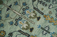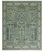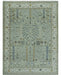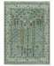 This luxurious rug showcases a sophisticated palette of soft celadon green, deep navy, and warm ochre, accented by delicate ivory highlights. Intricate tree-like and floral motifs form a harmonious medley of traditional elegance. The symmetrical design is bordered by a classic frame adorned with geometric vines and blossoms, suggesting Persian influences. Its texture is plush and inviting, crafted from premium materials for a refined finish. A stunning piece that effortlessly blends cultural richness with contemporary style.