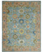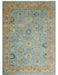 Ready to Ship Hand Knotted Blue and Rust Modern Oushak Area Rug