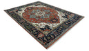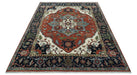 Rust, Ivory and Blue Fine Hand Knotted Traditional Heriz 9x12 wool area rug